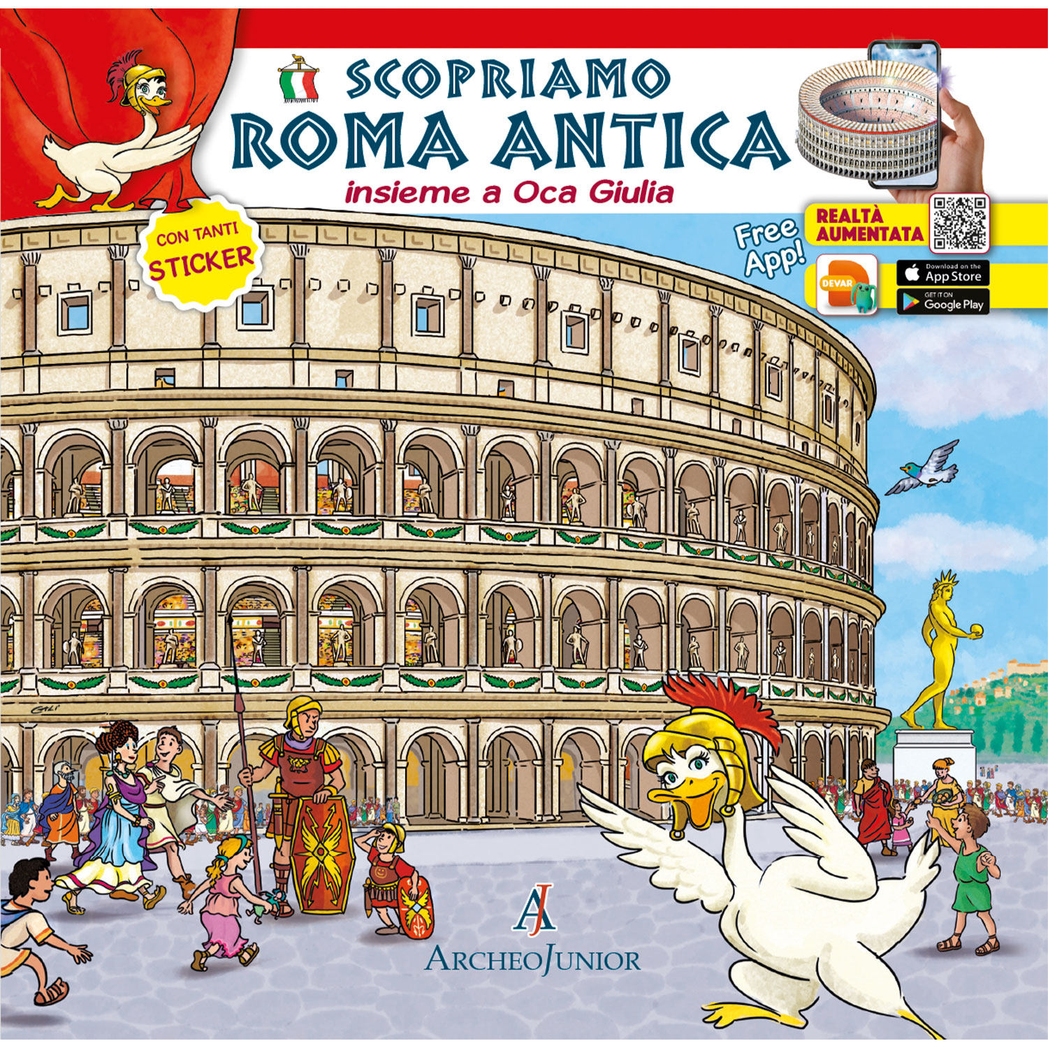Discover Ancient Rome with Julia the Goose (Archeojunior series) is a kid guide designed to play and learn, but not only! The civilization of Ancient Rome is represented through the reconstruction of ancient monuments with images. The main character, Giulia the Goose, takes the children to discover the most important places and buildings in Rome, with games and curiosities, explaining their use, what was done inside them and who frequented them.