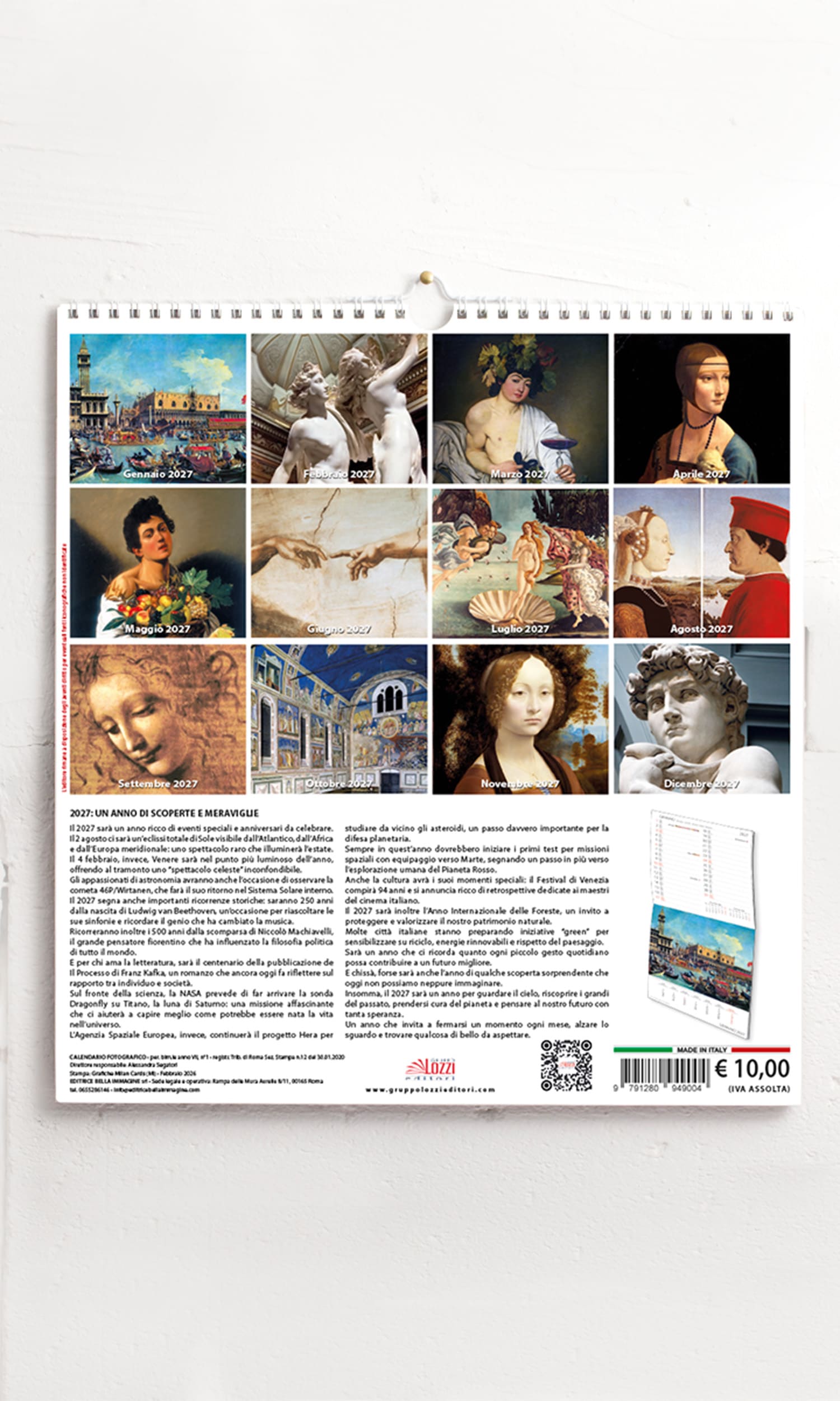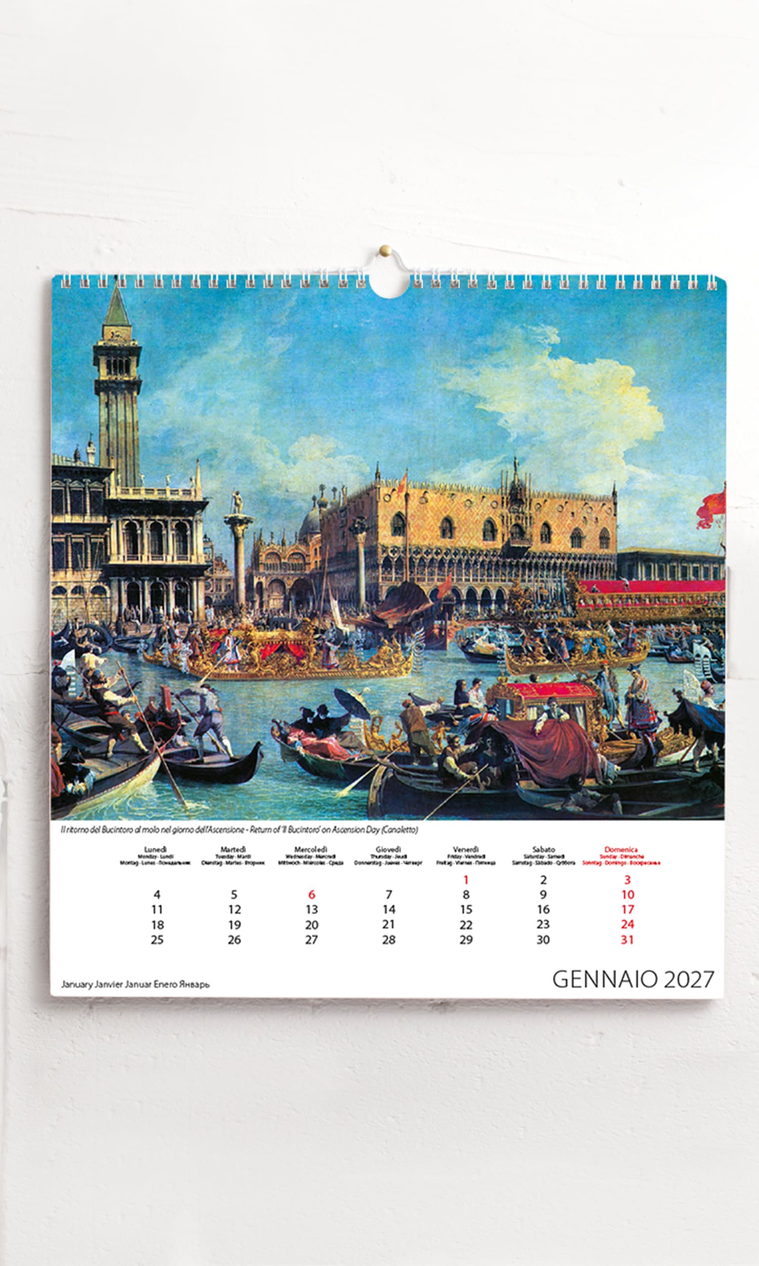 Calendario spiralato con gancio da muro